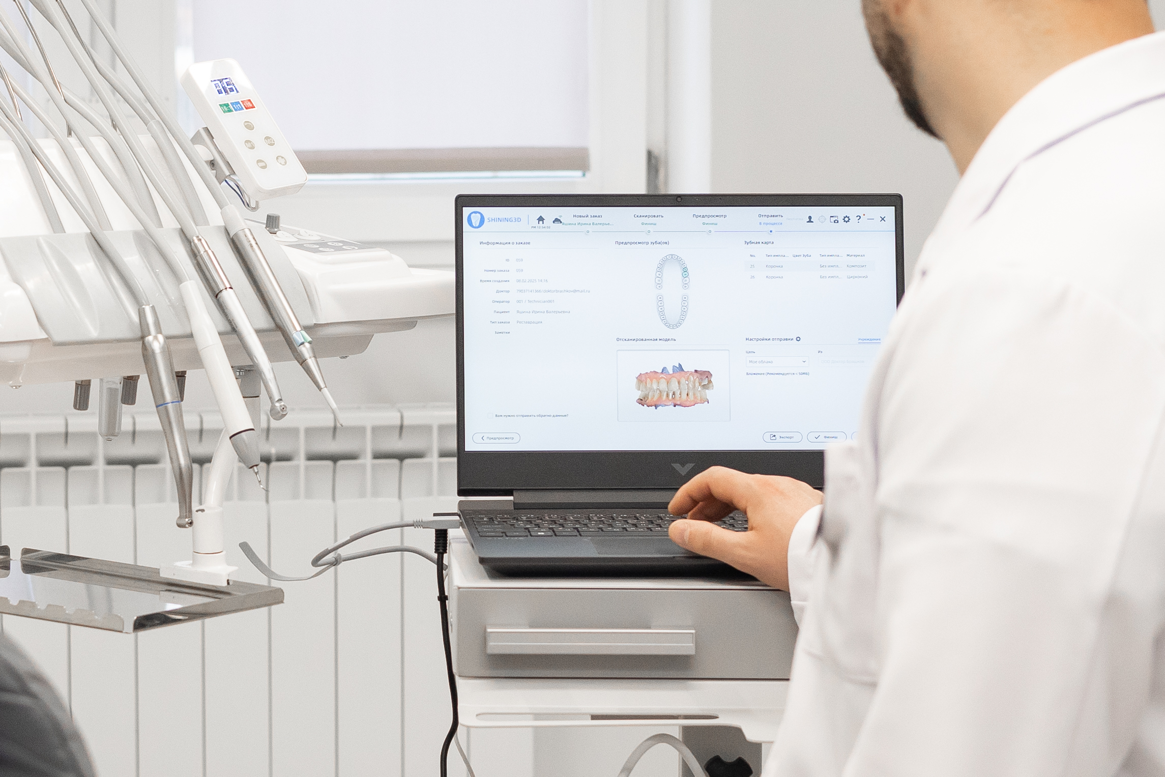 Сканер создает точную цифровую модель зубов и заменяет силиконовые слепки, что позволяет убрать дискомфорт у пациента и ускоряет весь процесс работы.