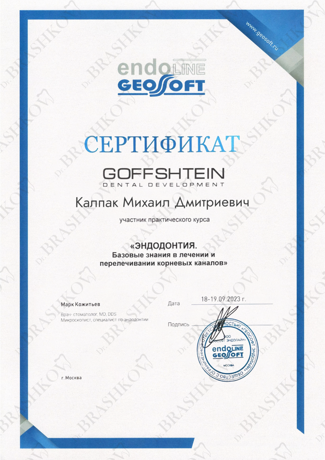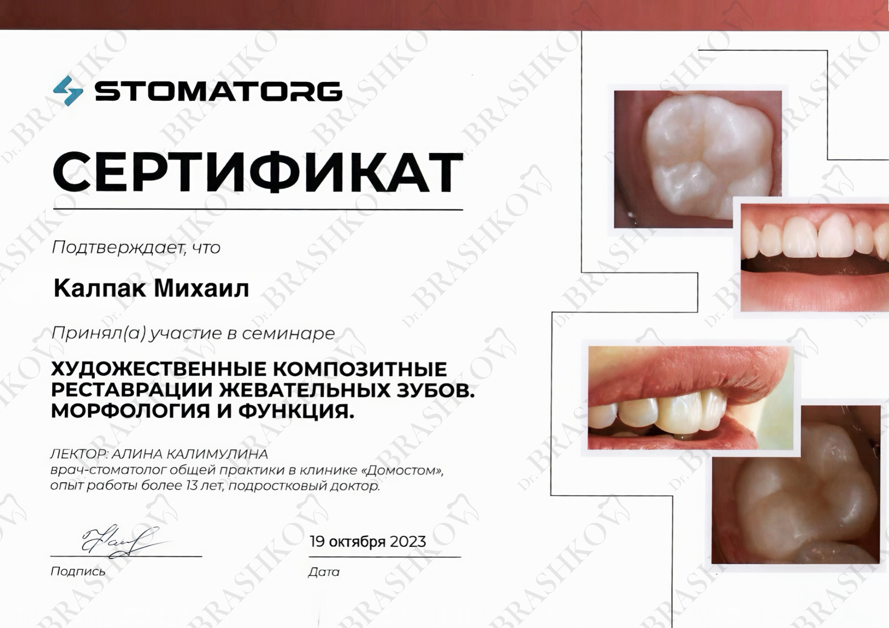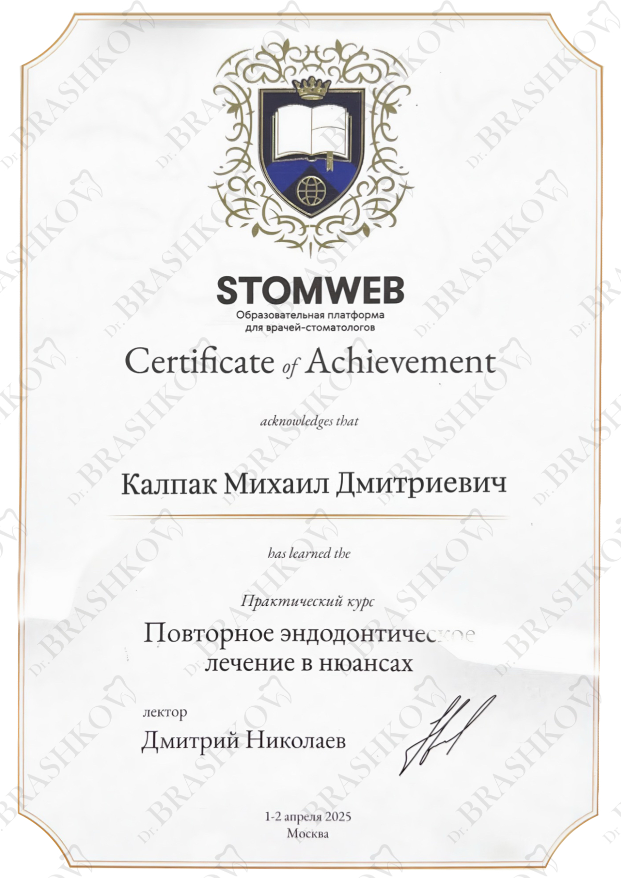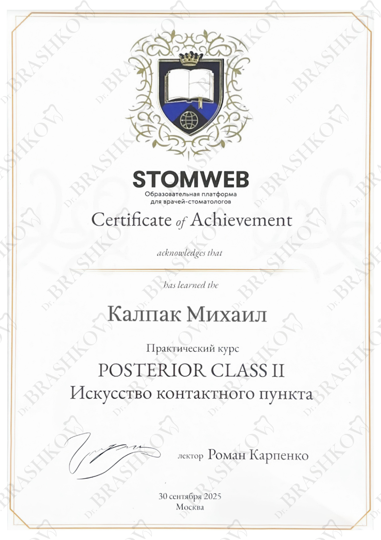 • В 2025 году завершил обучение по программе "Стоматология общей практики" в Национальном НИИ общественного здоровья имени Н. А. Семашко.