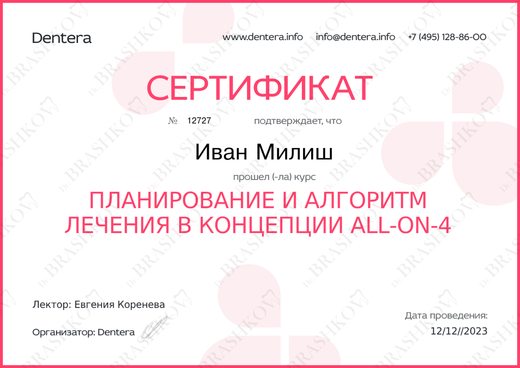Активный и постоянный участник профильных лекций, всероссийских конференций и специализированных курсов для стоматологов-хирургов.