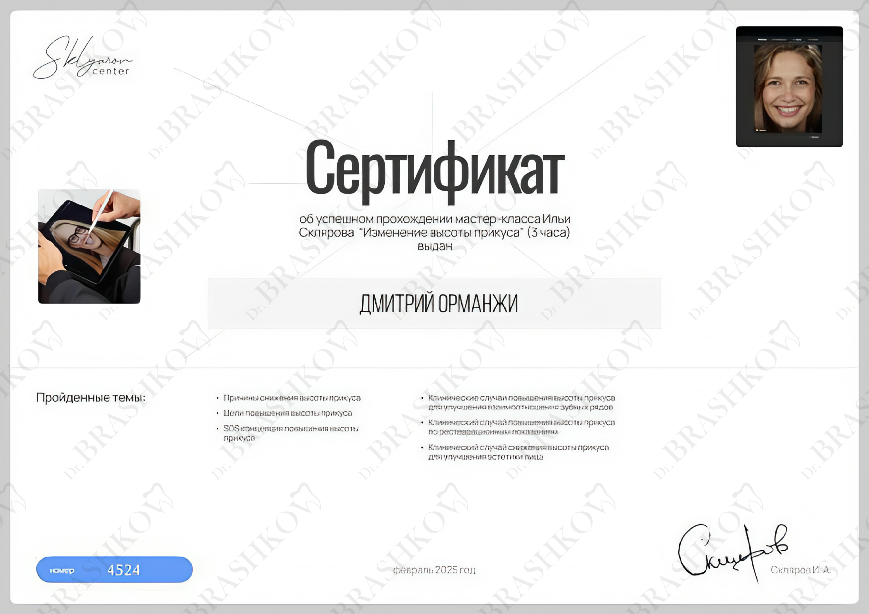 • Владение цифровыми технологиями (CAD/CAM, внутриротовое сканирование) для точной диагностики и прогнозируемого результата.